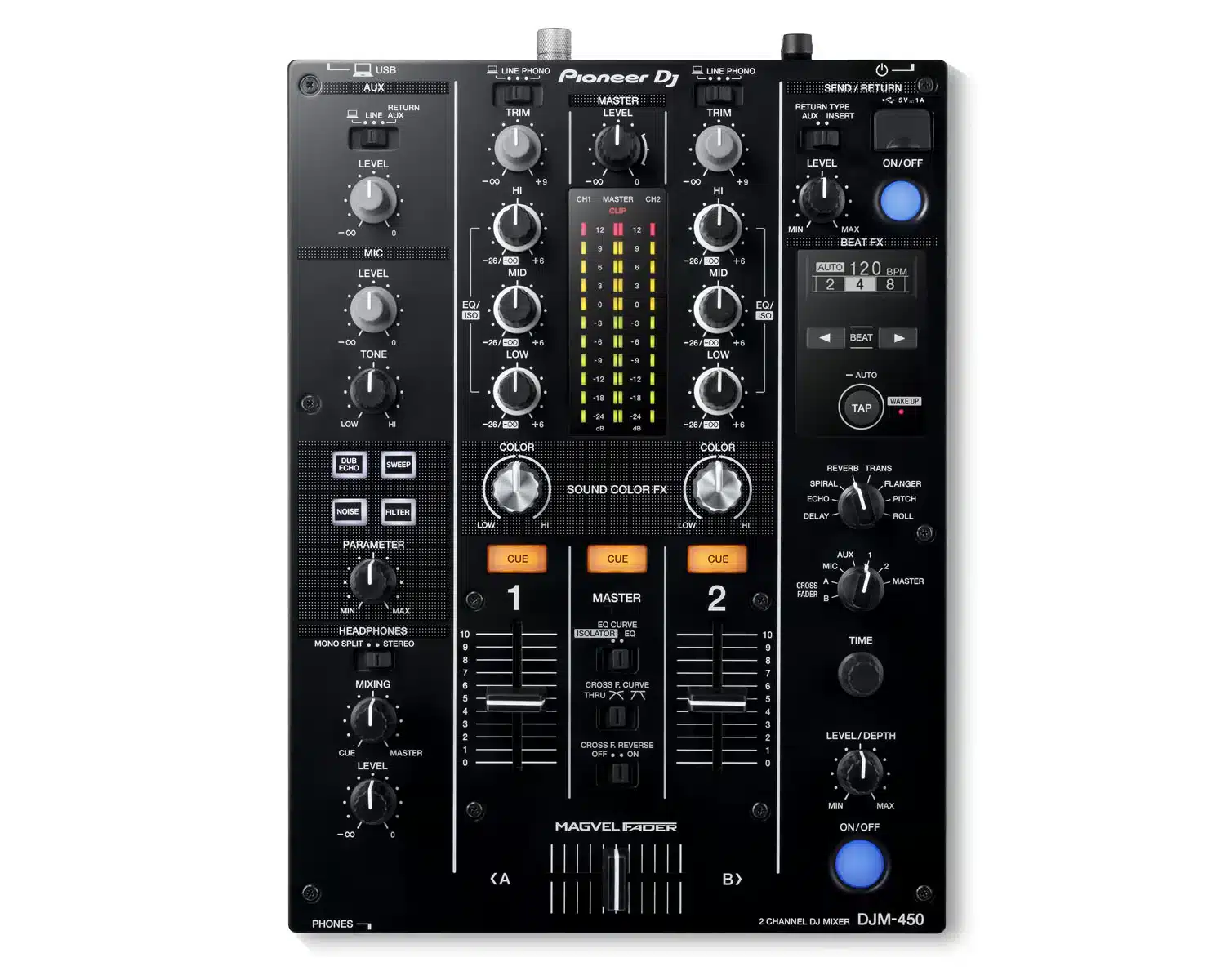 - PROFESSIONAL LAYOUT: Mixing on the DJM-450 feels instinctive thanks to the layout design, which inherits traits from the DJM-900NXS2 professional mixer.
