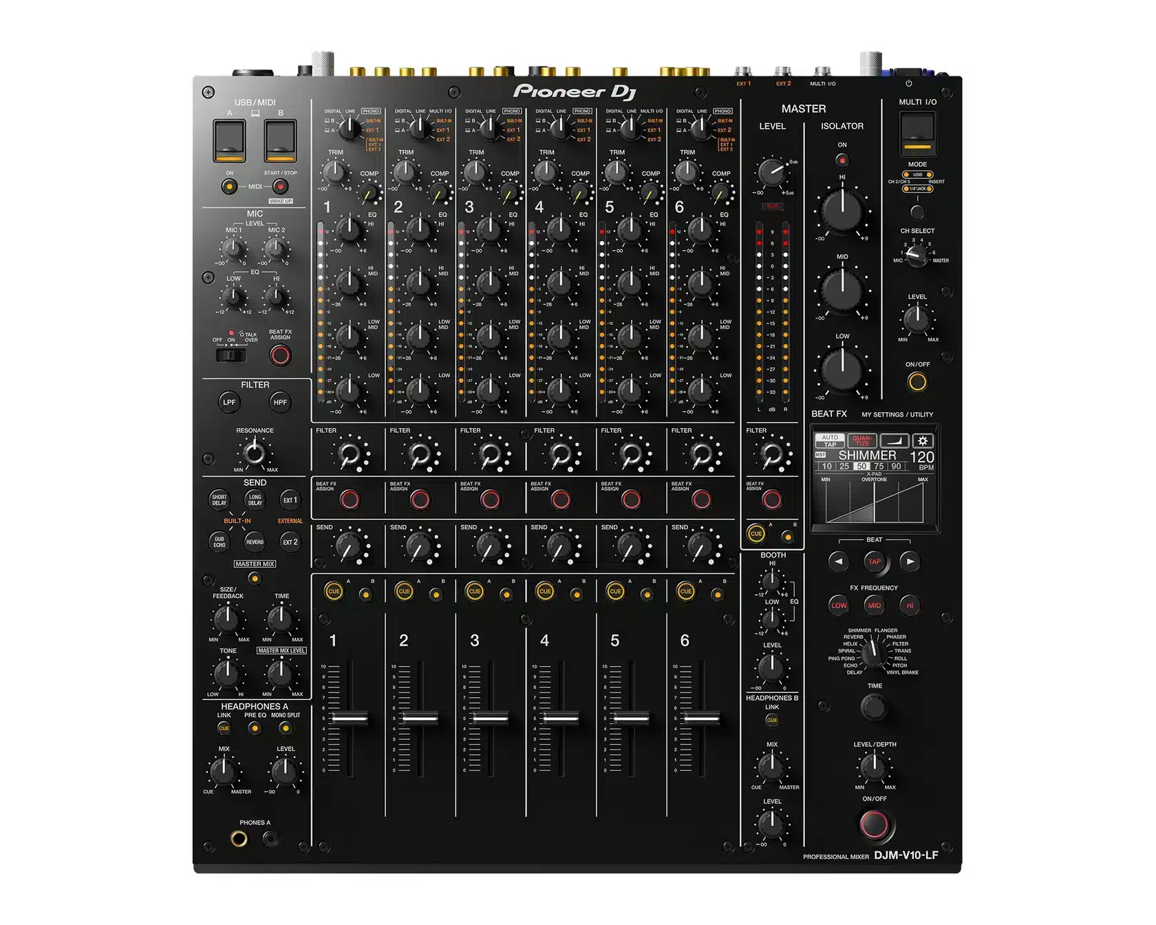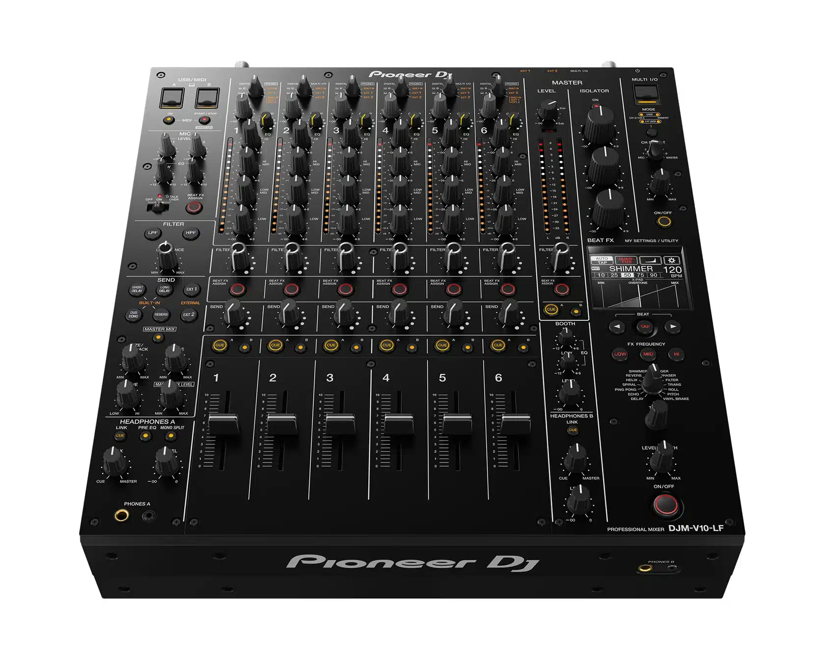 All the other features and specifications of the DJM-V10-LF are the same as the DJM-V10, which has become popular with the most creative DJs since its release in early 2020. The 6-channel unit is loaded with unique features and produces warm audio with energy and presence.