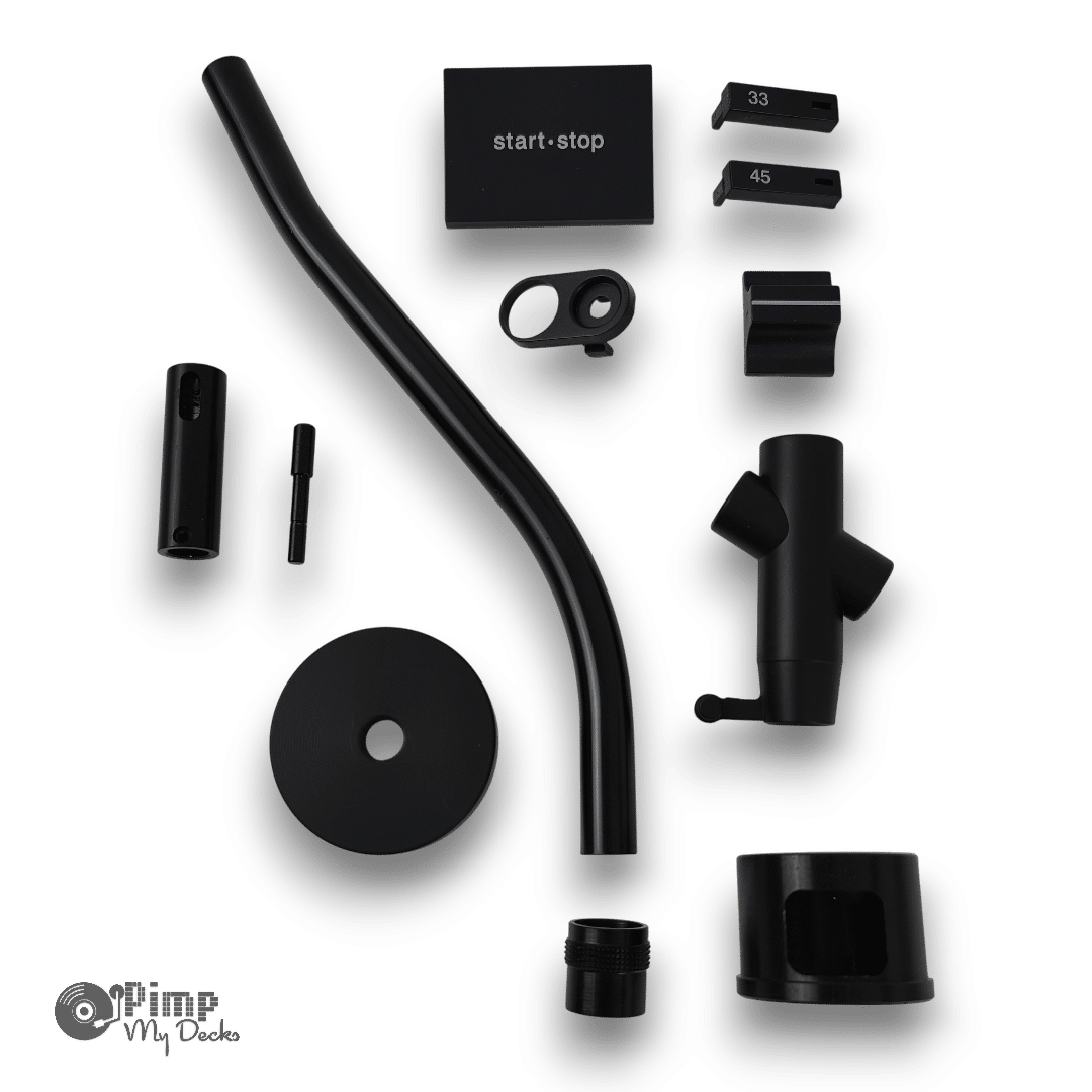 TECHNICS SL 1200 1210 MK2 – MK6 – TOTAL BLACKOUT KIT – START STOP – 33 45 – PITCH KNOB – TARGET SURROUNDย –ย STROBE TOWER – POP UP TURRET AND PIN – TONEARM TUBE AND COLLAR – TONEARM CENTRE PIVOT – 45 ADAPTER